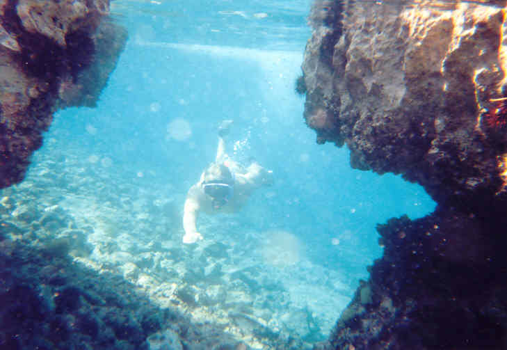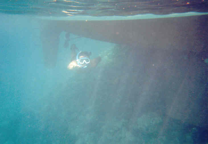 Rychle jsme se naobědvali a započala zábava ve vodě. Důstojníci fotili přírodní úkazy a život ve vodě a rovněž zkoumali dno kolem lodi. Mužstvo se pouze nedbale snažilo zbavit se špíny a zápachu držícím se na jejich tělech plaváním ve vymezeném teritoriu kolem lodi. Pár žertovných střetů v měření síly mezi mužstvem a důstojníky skončilo hanebným ústupem mužstva po získání svršků jejich plavek důstojníky.
