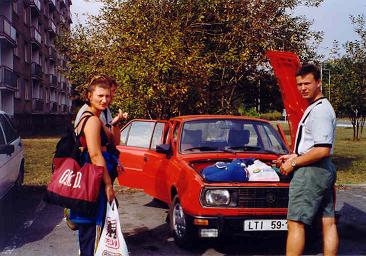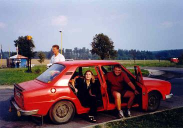 V 15.00 hodin vyrážíme, první skupina z Prahy (Láďa, Markéta J., Radek a Renata) a druhá z Tábora (Jindra, Markéta B. a Petr). Setkání obou vozů máme naplánováno u benziny v Hladově (Jihlava). Tam také probíhá poslední dotankování benzínu a plynu a pokračujeme na hranice do Znojma.